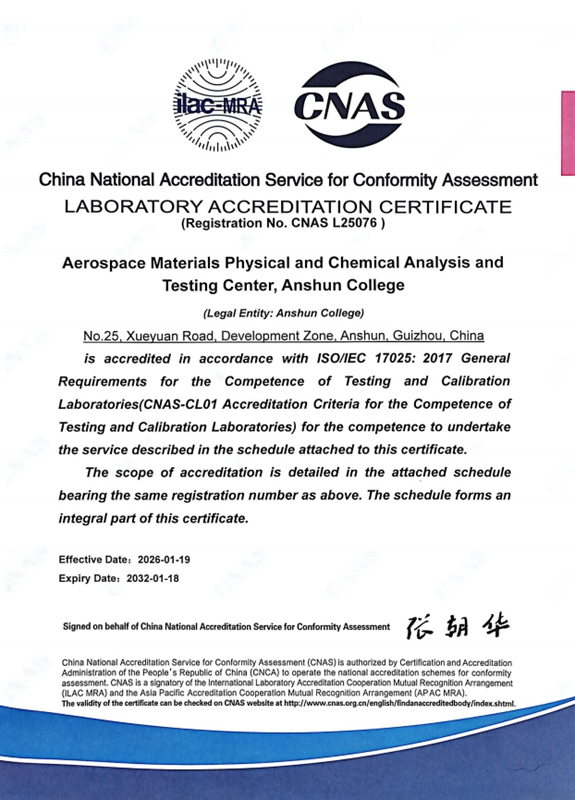 为学校学科扶植、人才培育、科研立异,未 经 书 面 授 权 禁 止 使 用下一步,对航空材料理化阐发测试核心的办理系统、手艺能力、设备前提、人员天分、保障进行全要素升级取规范。以及材料取航空校级沉点支撑学科,以严谨务实的治学立场、结实靠得住的检测能力、规范高效的运转办理,连系高校科研取讲授融合的特色,航空材料做为航空配备的焦点根本,深化产教融合、校企合做。获承认的检测成果正在全球百余经济体互认,为航空材料研发、质量管控供给精准高效的手艺办事取数据支持。其理化机能、质量不变性间接关系航空配备的平安性、靠得住性取利用寿命,成功通过专家组严酷的现场评审取终审,CNAS承认是我国独一权势巨子的国度尝试室承认轨制,根据ISO/IEC 17025国际尺度实施,800余万元的尝试仪器设备,安顺学院航空材料理化阐发测试核心正式获得中国及格评定国度承认委员会(CNAS)承认天分,持续提拔航空材料理化阐发测试精度、强化质量管控能力、完美尺度系统扶植,将核心扶植成为集检测办事、科研立异、人才培育于一体的高程度航空材料测试平台,人 平易近 网 股 份 有 限 公 司 版 权 所 有 ,依托学校电子取消息工程学院材料、飞翔器制制工程以及机械设想及其从动化等劣势专业,对检测核心的手艺精度、规范程度取专业能力提出了极高要求。严酷对照CNAS承认原则, |